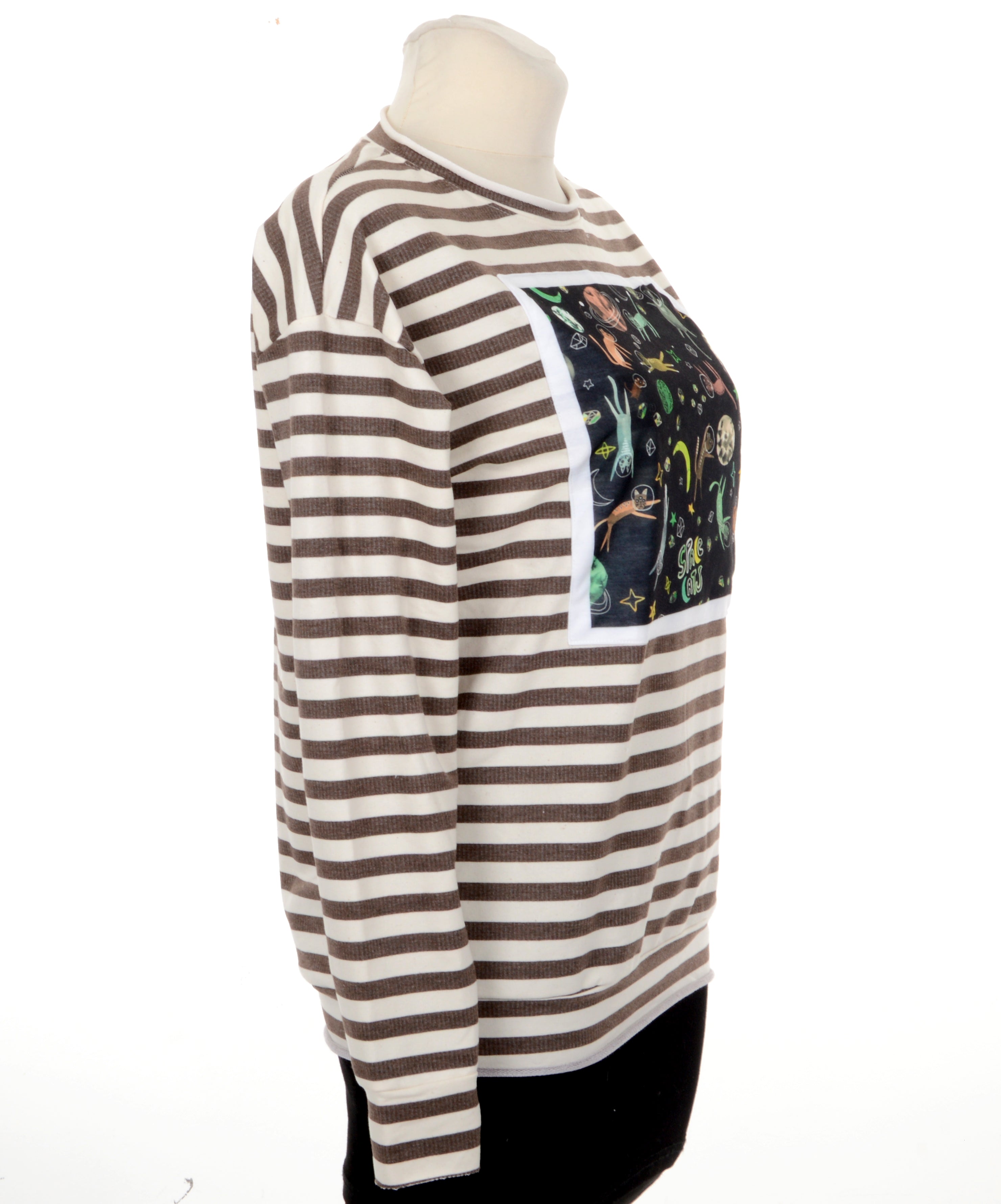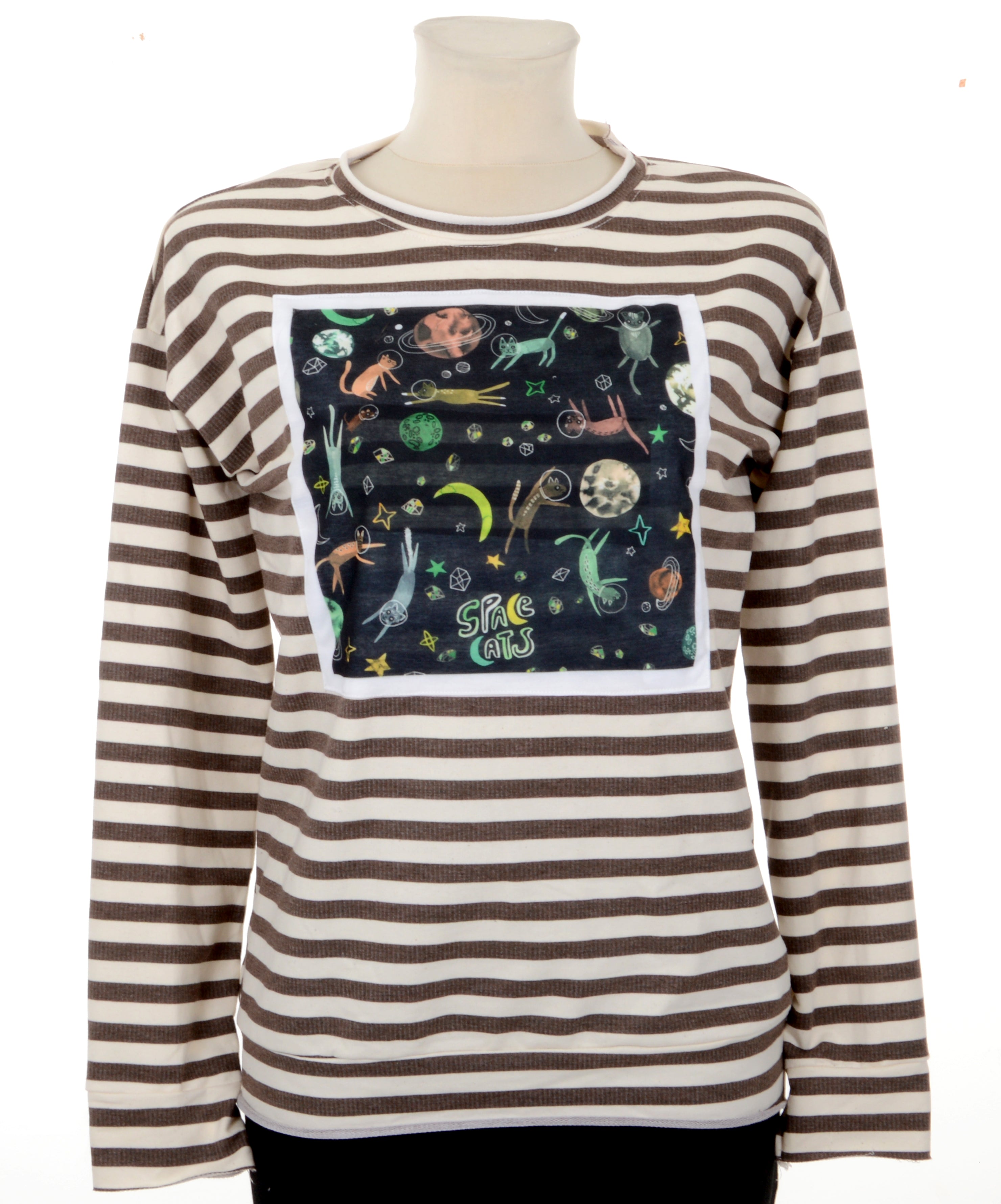 Jacky is 1.77 and wears size 36 (EU). Normally wears the XS in her t-shirts and sweaters.