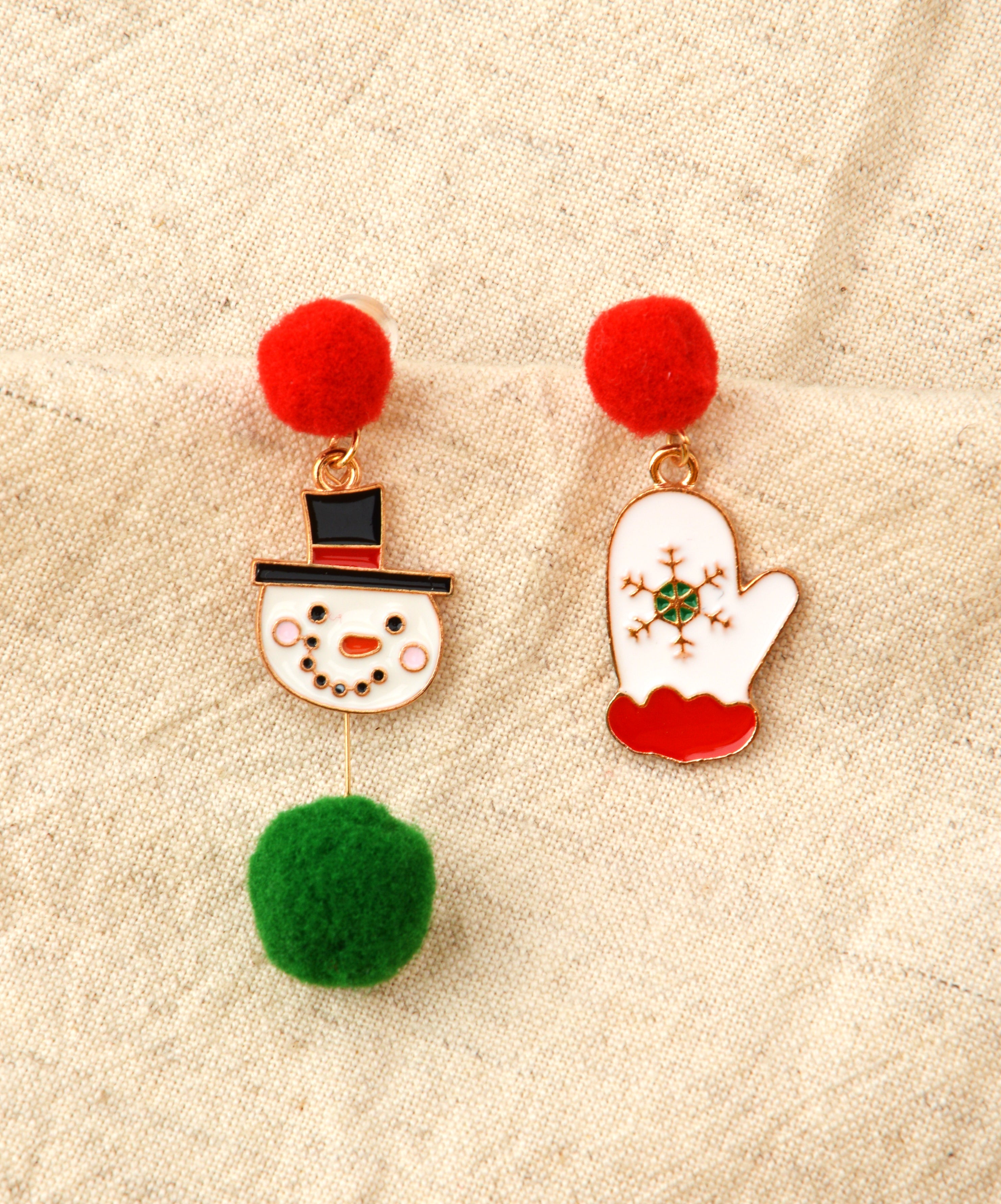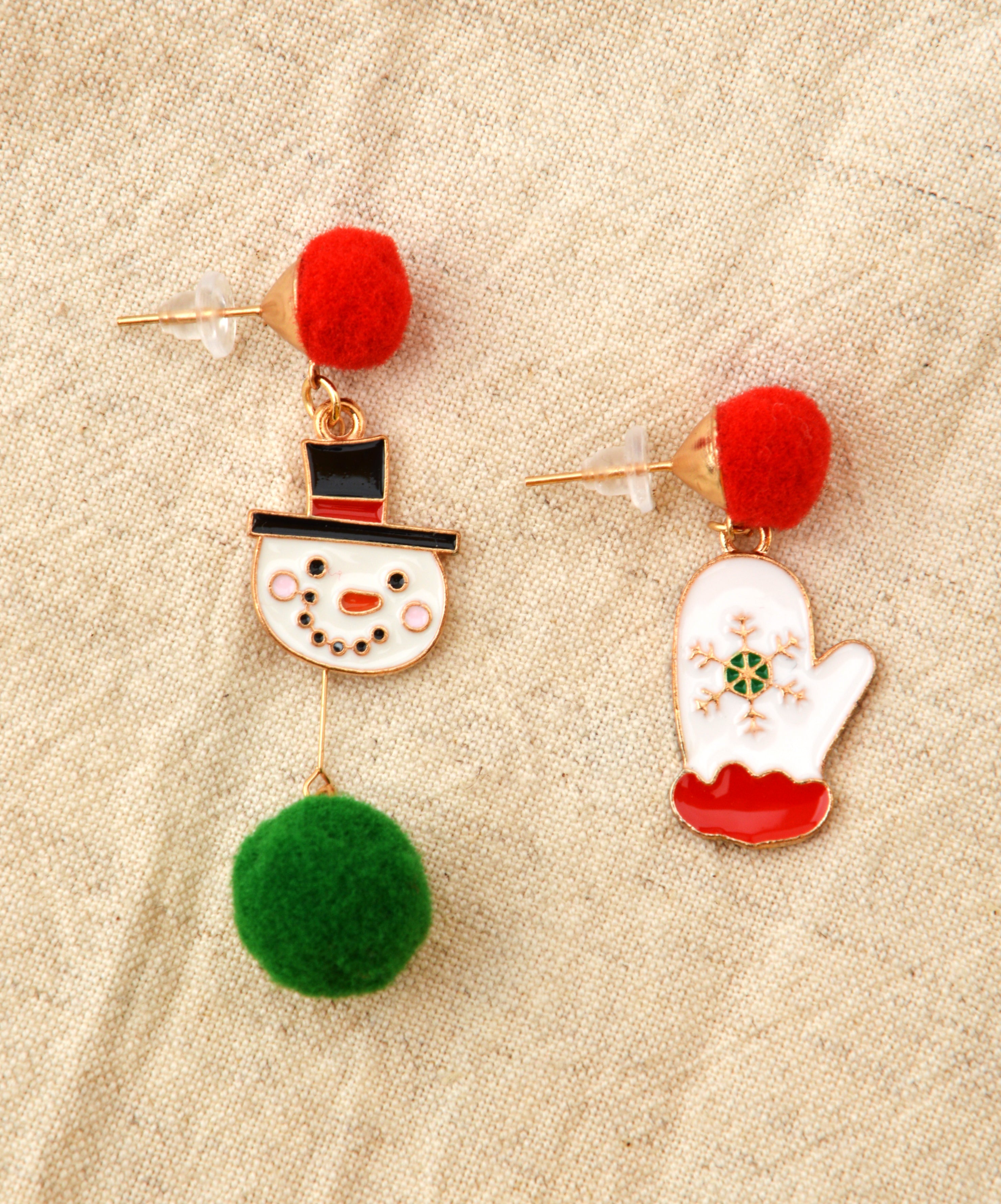 Christmas Earrings with Snowman and Gloves Design