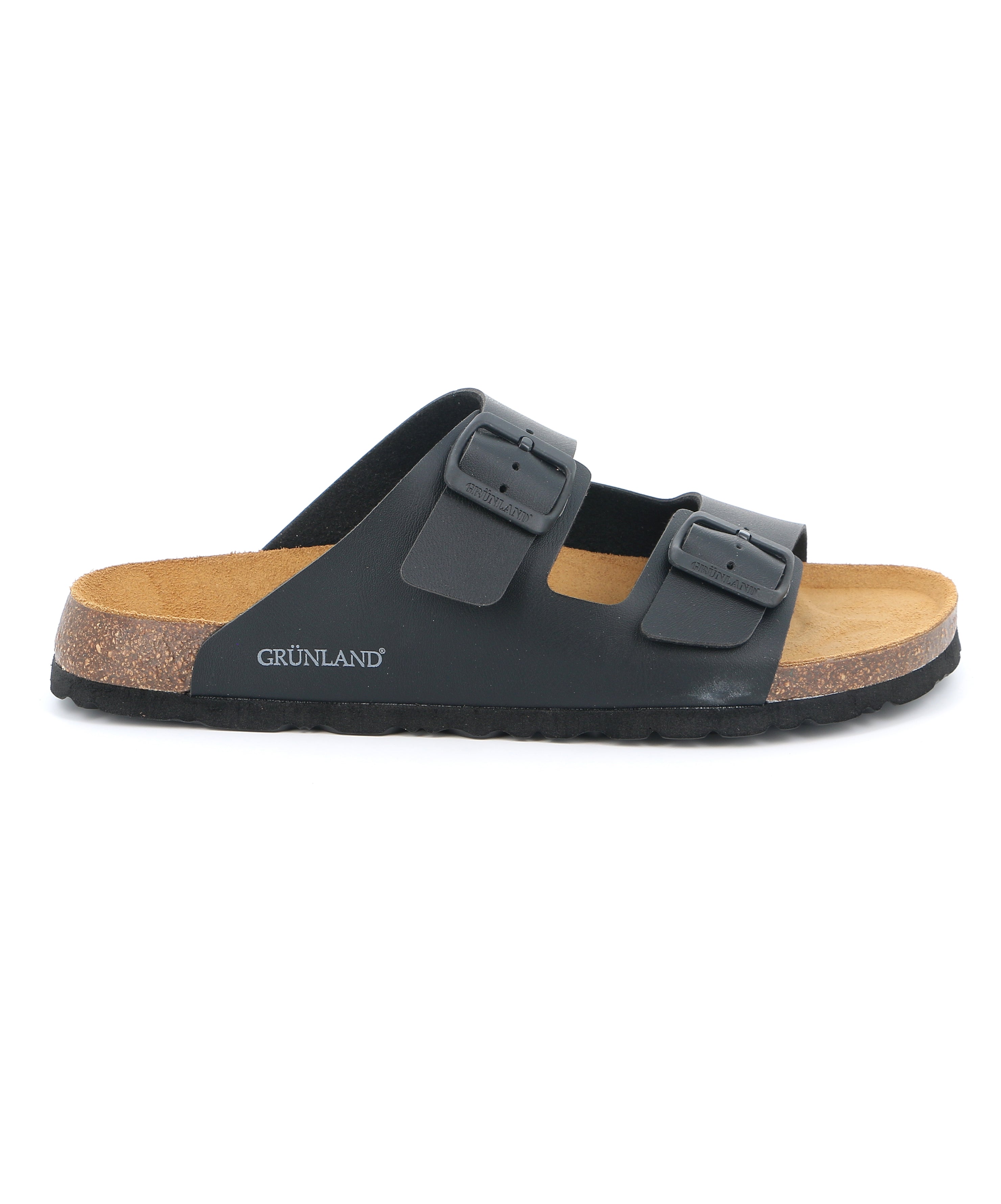 Grünland Black-Black Double Strap Men's Slippers