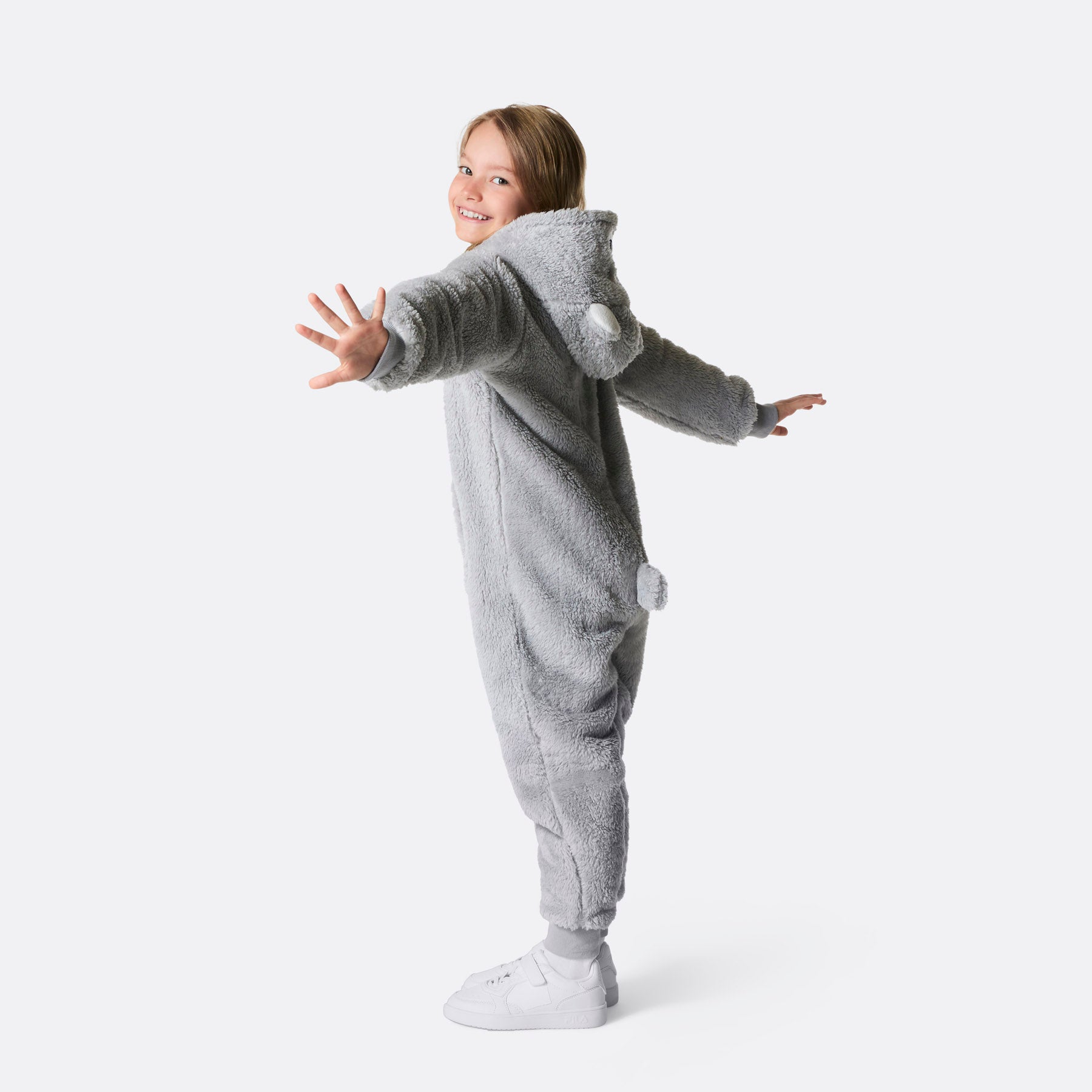 Ultimate Comfort for Kids Transform your child's lounging experience with our Kids' Grey Teddy Bear Onesie. Crafted from plush teddy...