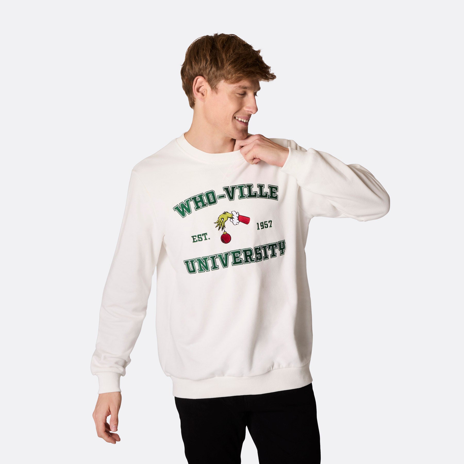 Join the Who-Ville Spirit Celebrate the season with cheer in our Men's Who-Ville University Christmas Sweatshirt. This stylish yet comfortable...