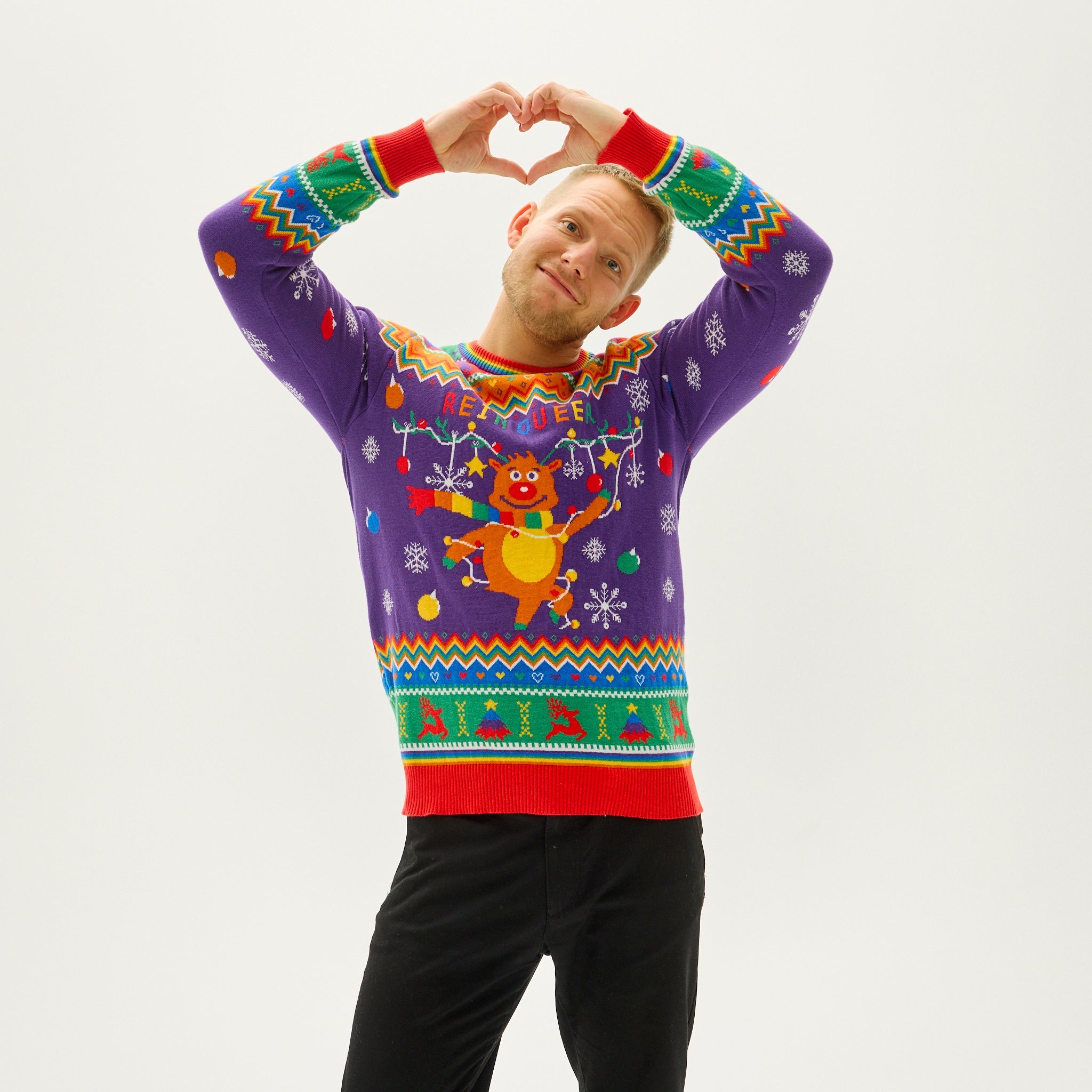 Wear your heart on your sleeve this Christmas with the Reinqueer Christmas Sweater for Men. This stylish sweater embodies a powerful message of love and acceptance, making it a perfect choice for the holiday season.