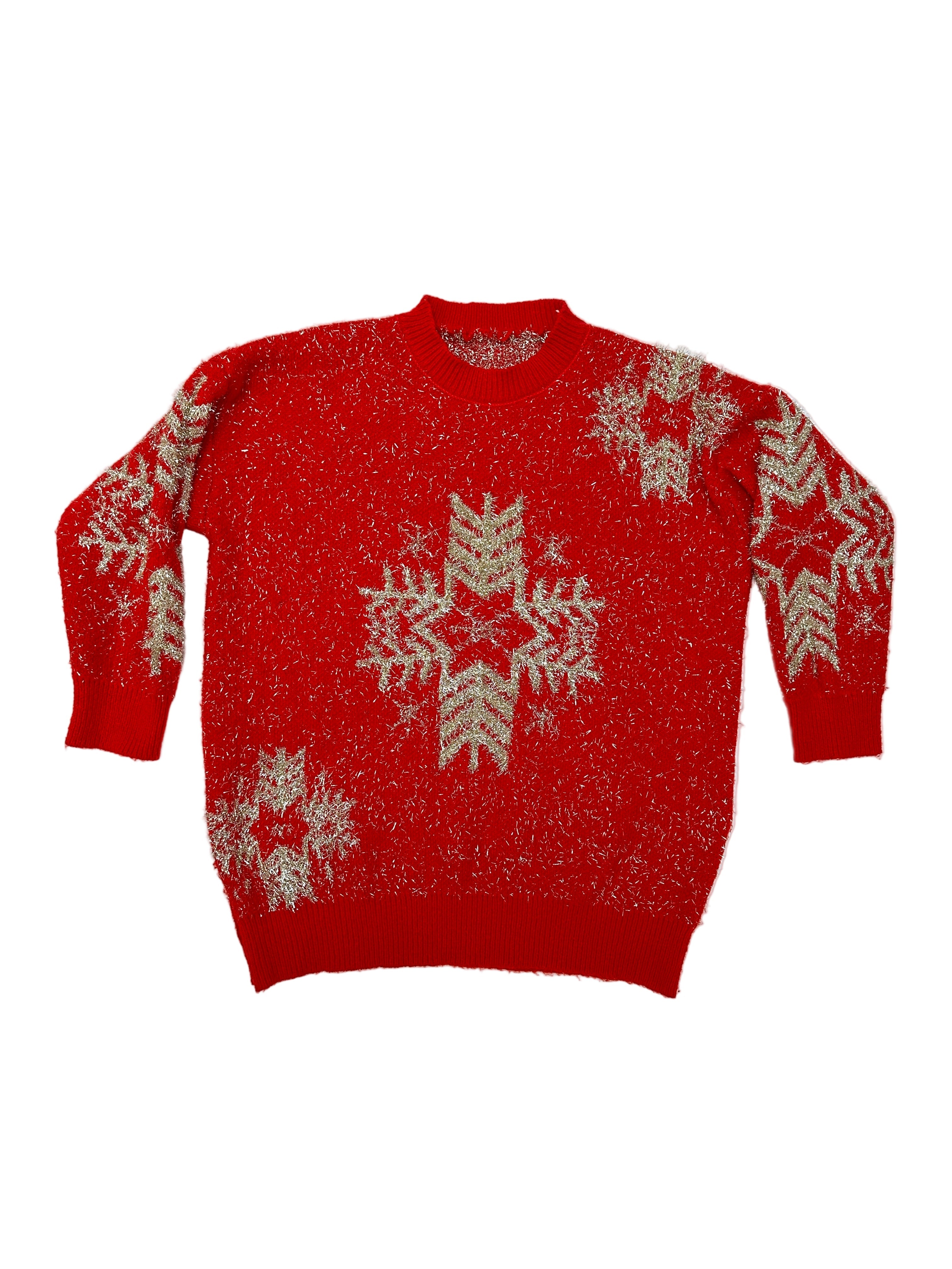 Shine Bright This Christmas Celebrate the magic of the holidays with our Vintage Christmas Sweater adorned with elegant golden snowflakes....