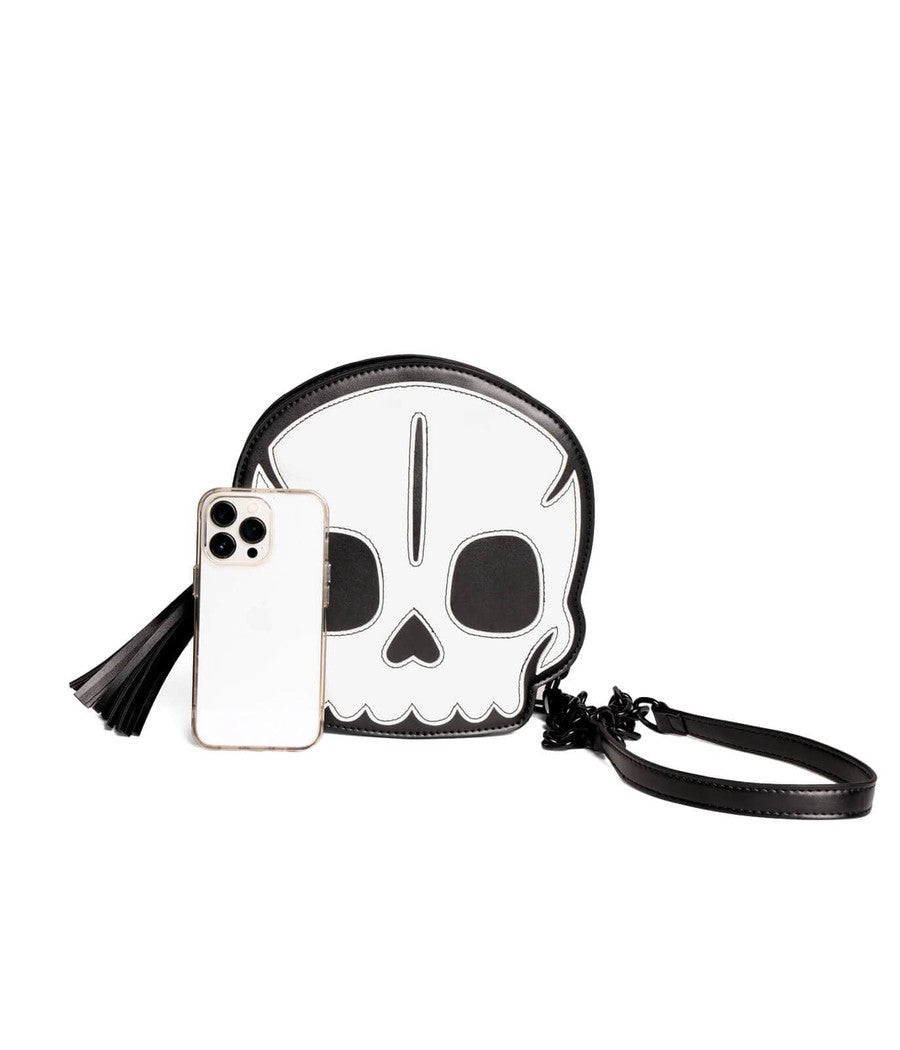 Designed with a playful skeleton motif, this purse combines style with practicality. Its spacious interior allows you to carry your valuables safely while making a bold fashion statement. Elevate your Halloween ensemble with this must-have accessory and stand out from the crowd!