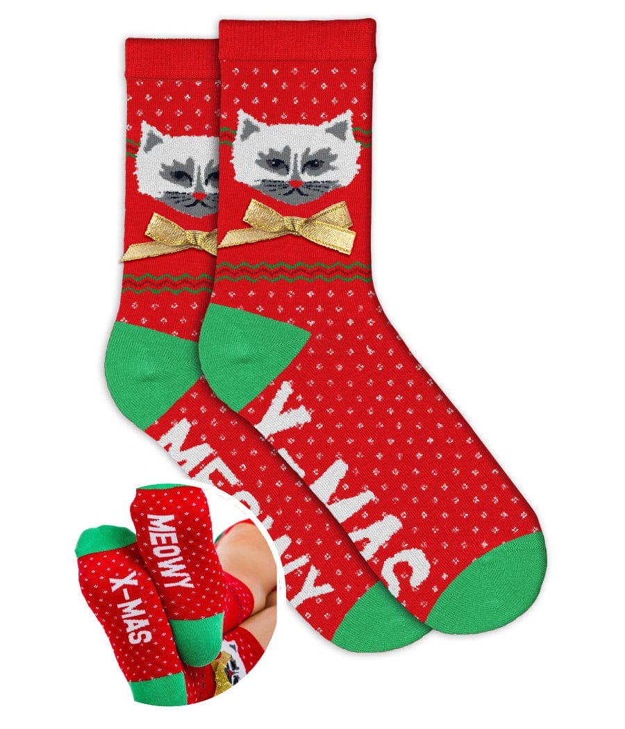 • Women's Meowy X-mas Socks (Fits Sizes 6-11W)