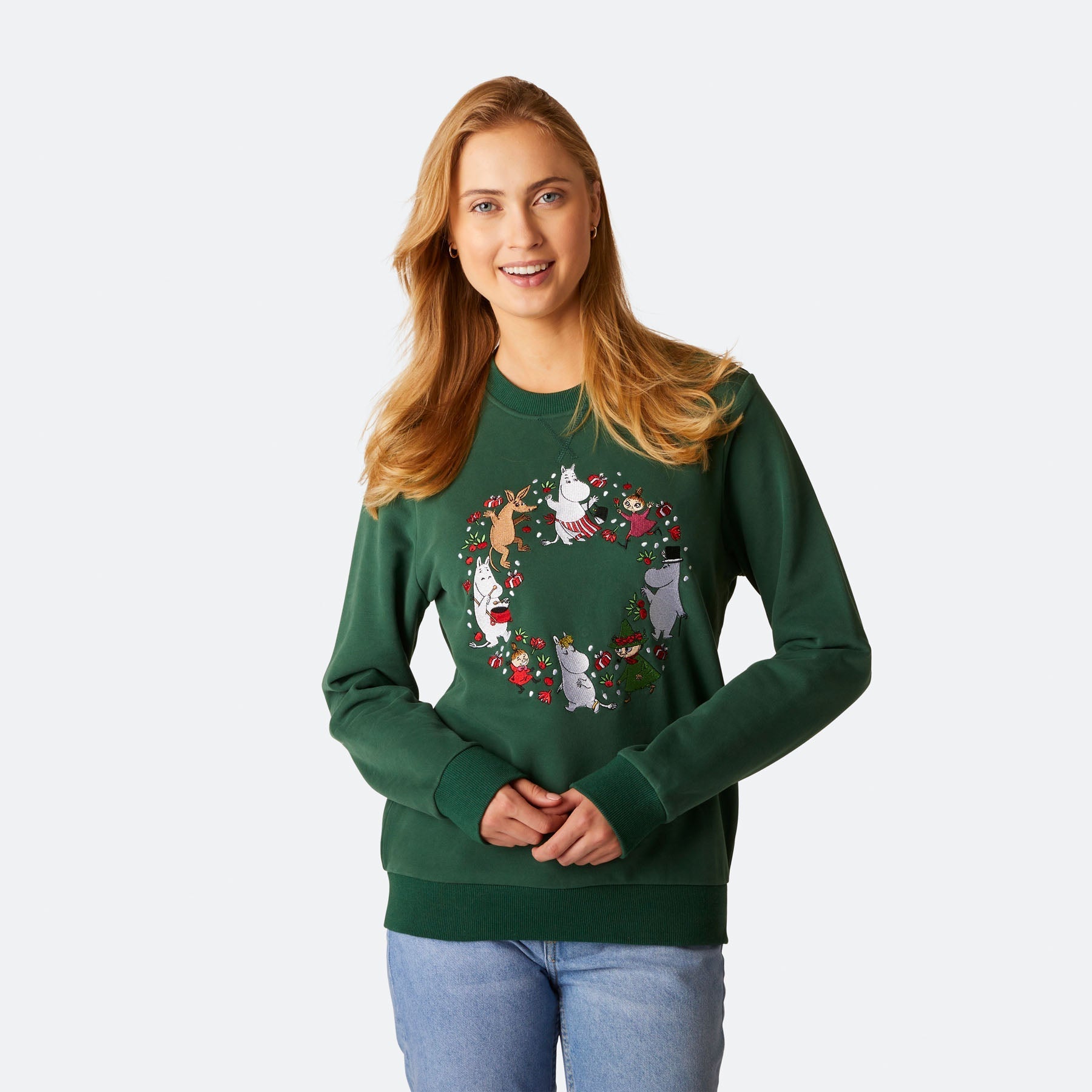 Women's Moomin Green Christmas Sweatshirt for Festive Style