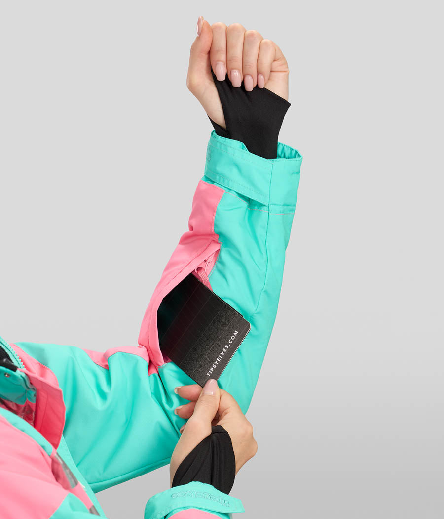 Featuring an eye-catching pink-and-teal color scheme with metallic zebra stripes, this insulated snow suit offers both warmth and style. Its adjustable belt and articulated fit promise comfort, so you can focus on carving through the snow.