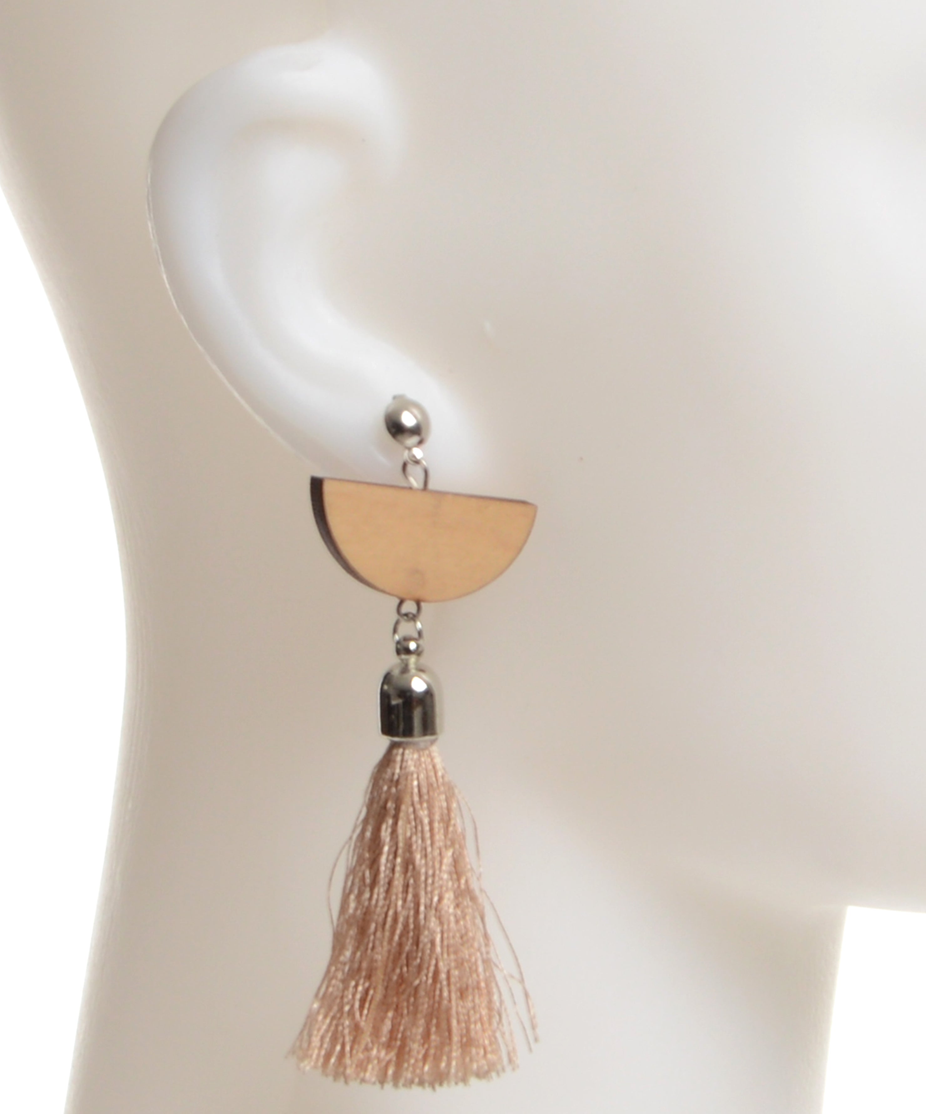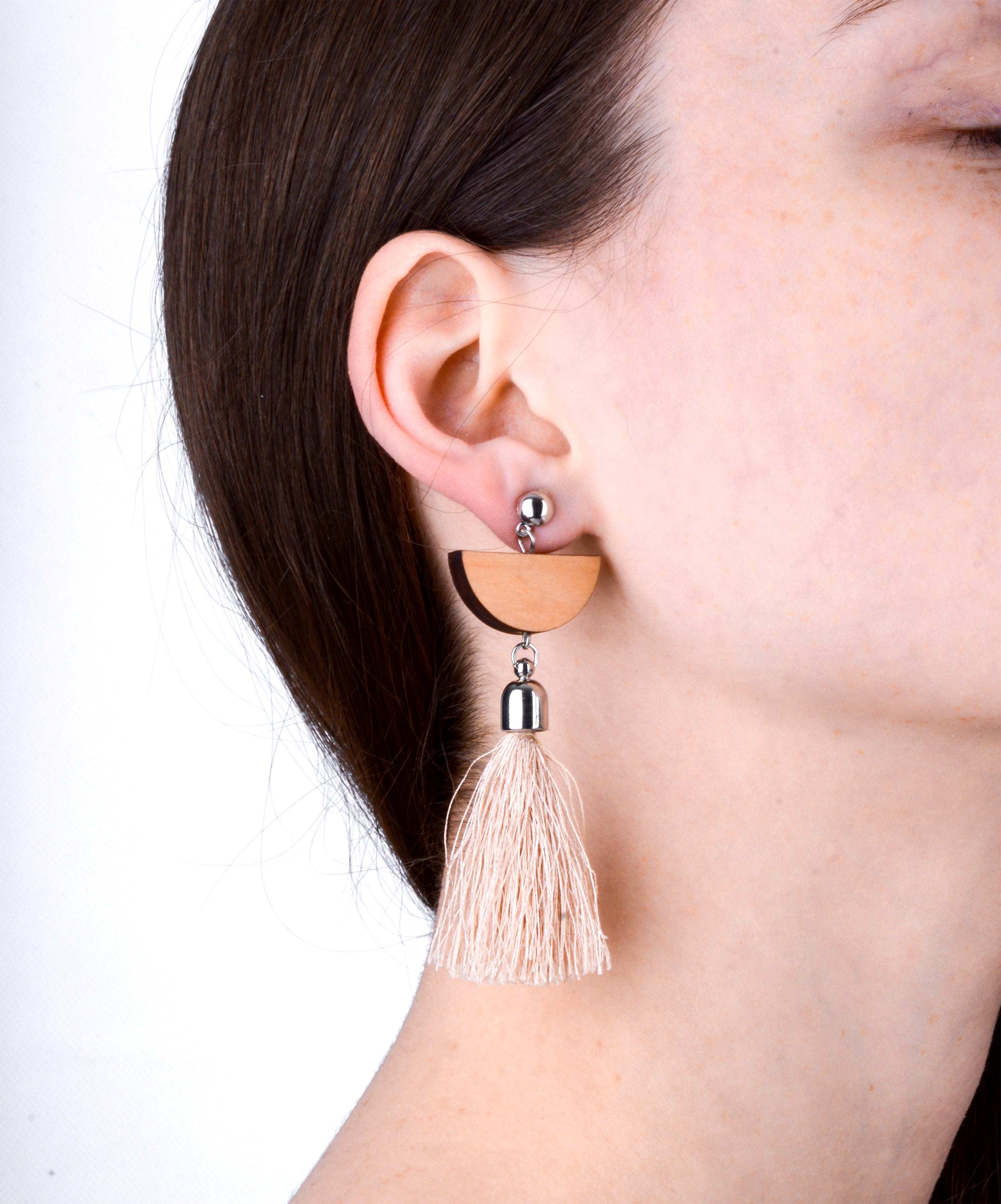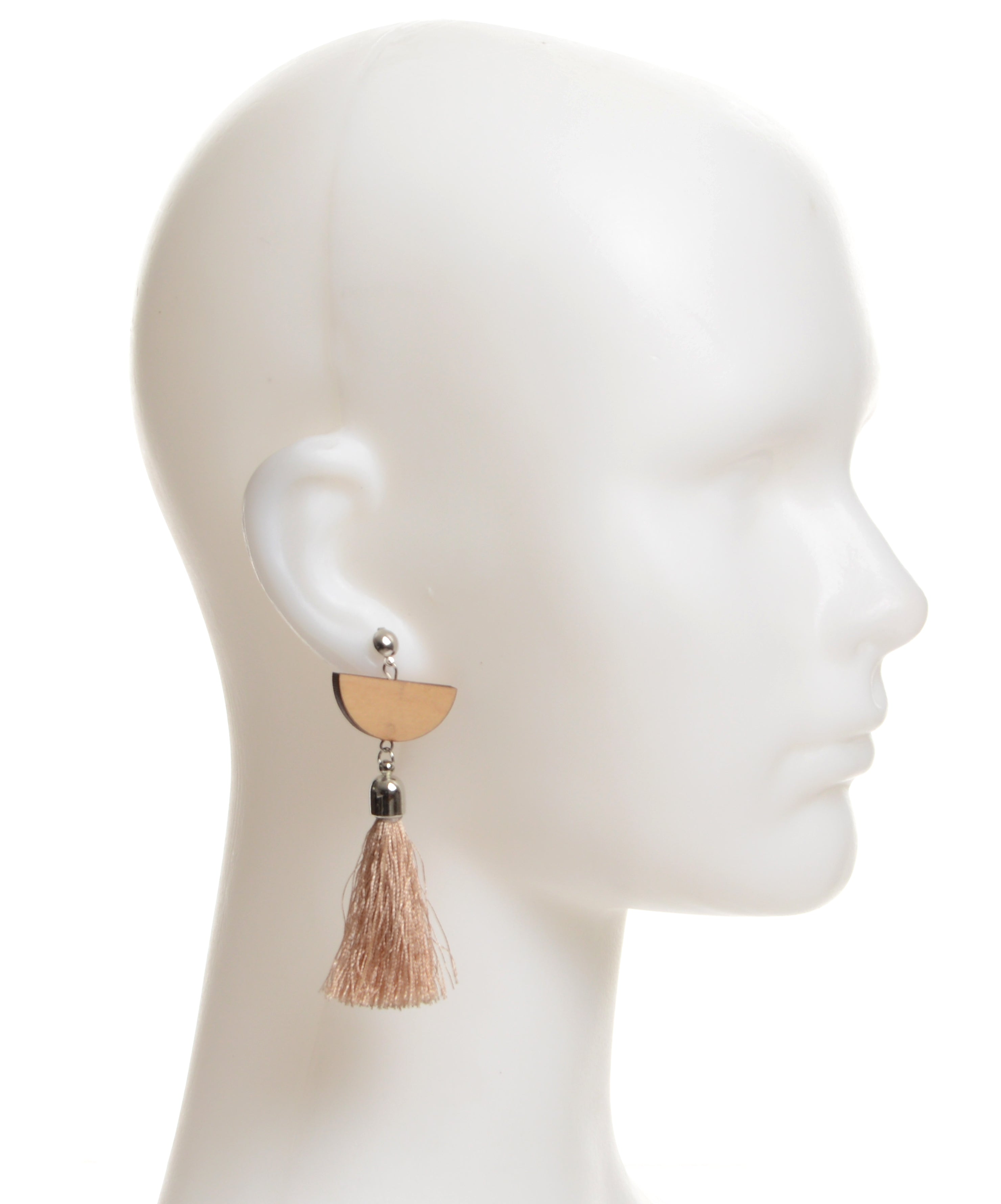 • Fringed Wooden Tassel Earrings